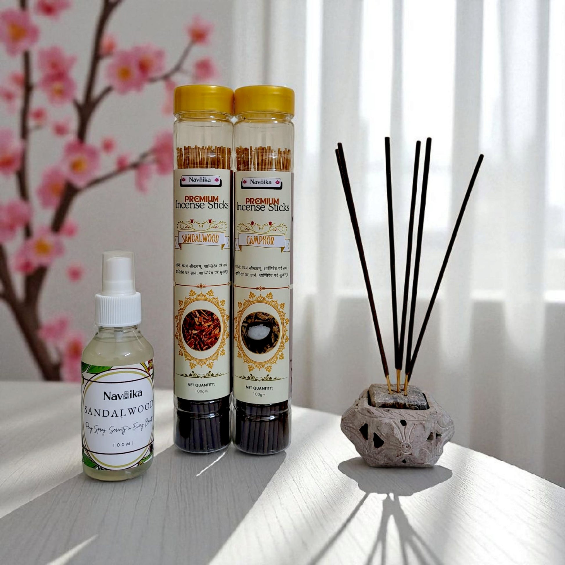 Dhoop Agarbatti Combo – Sandwood & Camphor and a Free Sandalwood Air Freshener 100ml
